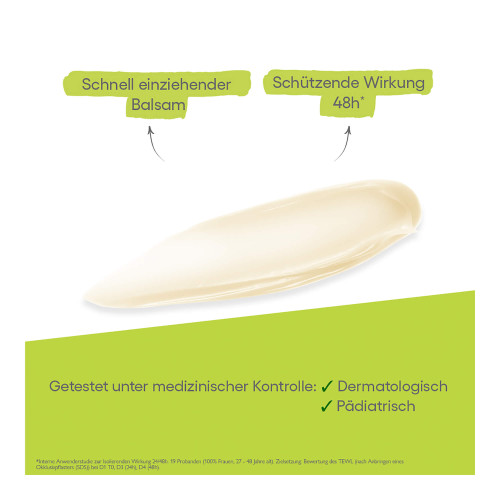Dermatologisch und pädiatrisch getestet, ist er für die ganze Familie geeignet. Er enthält weder Duftstoffe noch Mineralöl.