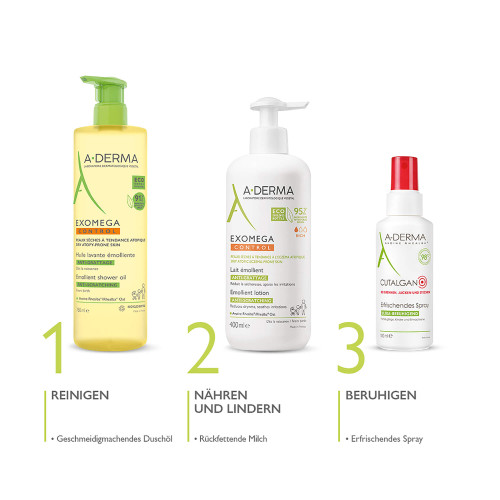 1. Reinigen Sie die Haut vor dem Auftragen der Körpermilch mit einem EXOMEGA CONTROL Reinigungsprodukt.