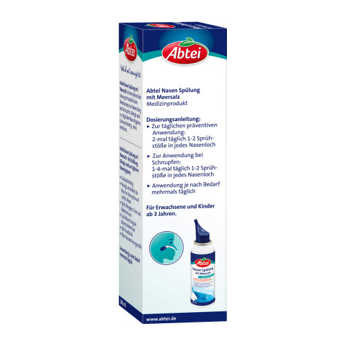 Abtei Nasenspülung mit Meersalz ist eine isotonische Lösung mit natürlichem Meerwasser zur Anwendung bei Schnupfen, Allergie und zur täglichen Nasenhygiene.