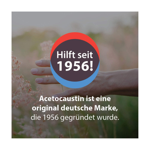 - Deutsche Qualität: Als Medizinprodukt Klasse IIa und Teil einer deutschen Traditionsmarke steht Acetocaustin® seit 1956 für bewährte Qualität und Zuverlässigkeit.