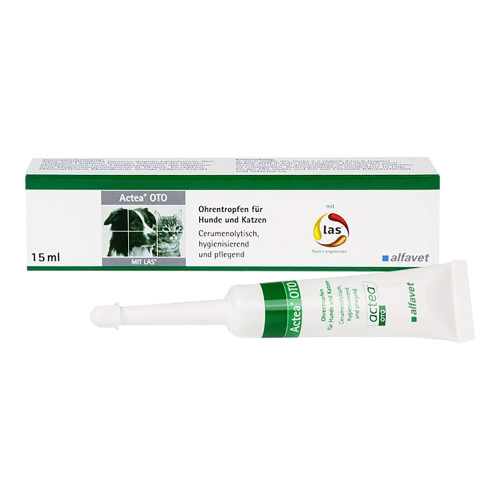 Je nach Größe des Tieres 2 x täglich 4 bis 8 Tropfen Actea® OTO in jedes Ohr eingeben. Die Ohrbasis sanft massieren um eine gleichmäßige Verteilung des Produktes zu ermöglichen. Anwendungsdauer mindestens 10 Tage, bis das Ohr sauber und frei von Cerumen (Ohrenschmalz) und Sekreten ist.