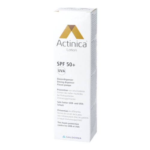 Actinica® Lotion ist generell für alle Hauttypen geeignet. Das Produkt wurde speziell für Menschen mit erhöhtem Risiko für hellen bzw. weißen Hautkrebs entwickelt. Der UV-Schutz von Actinica® Lotion entspricht der höchsten Kategorie 'sehr hoher UV-Schutz' (LSF 50+). Eine zusätzliche Anwendung von Sonnenschutzmitteln ist nicht notwendig.