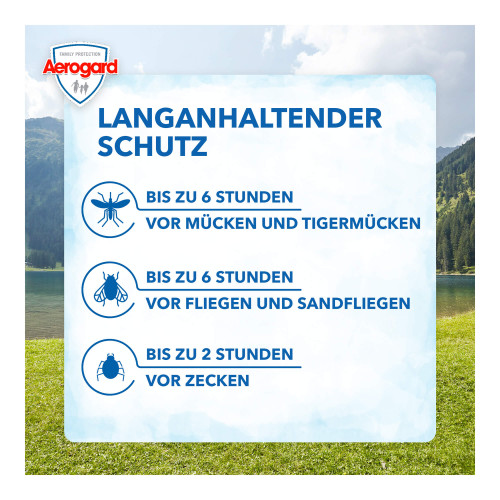 Bis zu 6h Schutz vor Mücken, Tigermücken und Fliegen. Mit pflanzenbasiertem Wirkstoff.
