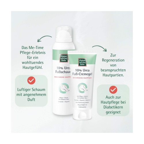 Der Hauptwirkstoff Urea ist ein natürlicher Bestandteil der Haut, der hilft, die Feuchtigkeitsbalance zu erhalten, die Hautwiderstandsfähigkeit gegen Umwelteinflüsse zu stärken und Verhornungen zu reduzieren. Zudem fördert Urea die Hauterneuerung und unterstützt eine glatte und geschmeidige Haut. Besonders für Diabetiker ist diese intensive Feuchtigkeitsversorgung hilfreich, da sie oft unter trockener Haut und reduzierter Hautregeneration leiden.