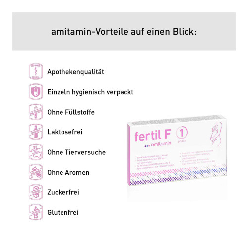 Calciumcarbonat, Magnesiumoxid, Überzugsmittel: Hydroxypropylmethylcellulose (pflanzliche Kapselhülle, enthält Farbstoff: Titandioxid), L-Ascorbinsäure, Eisensulfat, Beta-Carotin, D-alpha-Tocopherylacetat, Nicotinamid, Tagetes-Blütenextrakt (5 % Lutein), Natriumselenit, Zinkoxid, Calcium-D-pantothenat, Mangansulfat, Cholecalciferol, Kupfercitrat, Thiaminhydrochlorid, Pyridoxinhydrochlorid, Riboflavin, 6(S)-5-Methyltetrahydrofolsäure Glucosaminsalz (Quatrefolic®), Pteroylmonoglutaminsäure, Kaliumiodid, D-Biotin, Methylcobalamin.