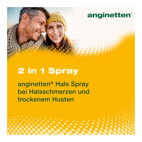 Das anginetten® Hals Spray 2 in 1 ist ein Medizinprodukt mit einer Honig-Rezeptur zur Beruhigung von Husten und zur Linderung von Halschmersymptomen. Das Spray bildet einen Schutzfilm im Rachenraum, der die gereizte Schleimhaut schützt und den Husten lindert. Das anginetten® Hals Spray 2 in 1 kann von Erwachsenen und Kindern ab 3 Jahren verwendet werden. Bei Kindern muss das Spray immer unter der Aufsicht eines Erwachsenen verabreicht werden.