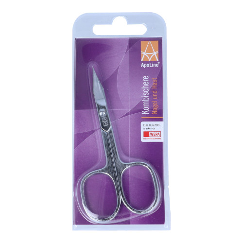Die Kombischere wurde für den Nagel und für die Nagelhaut entwickelt. Die kräftigen Schneiden für ein müheloses Kürzen der Nägel. Die feine, schlanke Spitze für empfindliche Nagelhaut.