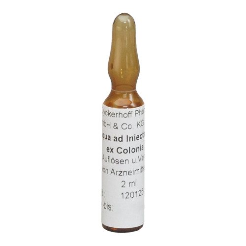 Aqua ad Iniectabilia ex Colonia Ampullen. Wirkstoff: Wasser für Injektionszwecke. Anwendungsgebiete: Zum Auflösen und Verdünnen von Arzneimitteln, gemäß den Angaben der Gebrauchsinformation der jeweiligen Arzneimittel.