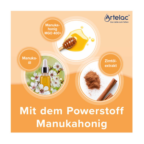 Juckende, schmerzende oder geschwollene Augenlider? Die Artelac® Augenlidhelfer-Salbe wurde speziell für die Linderung solcher Beschwerden entwickelt, die z. B. durch ein Gersten- oder Hagelkorn verursacht werden. Ihre einzigartige Kombination aus hochwertigem Manukahonig MGO 400+, Manukaköl und organischem Zimtölextrakt lindert gezielt bei Reizungen, spendet intensive Feuchtigkeit und unterstützt die natürliche Regeneration der empfindlichen Haut rund ums Auge. Die Salbe enthält keine Konservierungsmittel, Duft- und Farbstoffe und ist nach dem Öffnen bis zu 3 Monate haltbar.