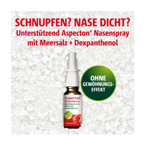 Aspecton® Nasenspray kann als begleitende Maßnahme bei Schnupfen und/oder verstopfter Nase über einen Zeitraum von bis zu 14 Tagen angewendet werden.