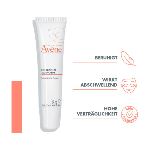 Die Augenpartie ist einer der empfindlichsten Bereiche unseres Gesichts und bedarf besonderer Pflege. Die beruhigende Augencreme von Eau Thermale Avène wurde speziell entwickelt, um die Bedürfnisse dieser sensiblen Hautregion zu erfüllen. Sie lindert Spannungsgefühle und Rötungen rund um die Augen und wirkt abschwellend, um ein Gefühl der Leichtigkeit zu vermitteln. Ihre reichhaltige Formel enthält Eau Thermale Avène Thermalwasser und weitere hochwertige Inhaltsstoffe, die die Haut im Bereich der Augenkontur schützen, Irritationen mildern sowie Hyaluronsäure mit feuchtigkeitsspendender Wirkung. Diese Augencreme ist zudem frei von Duftstoffen und eignet sich daher besonders gut für empfindliche Haut.