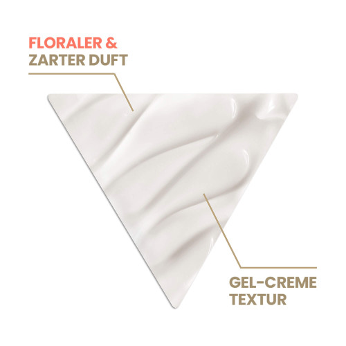 Ihre Gel-Creme-Textur mit sofortigem Frischeeffekt schmilzt auf der Haut und ermöglicht ein schnelles Aufnehmen der Aktivstoffe in die oberen Schichten der Epidermis.