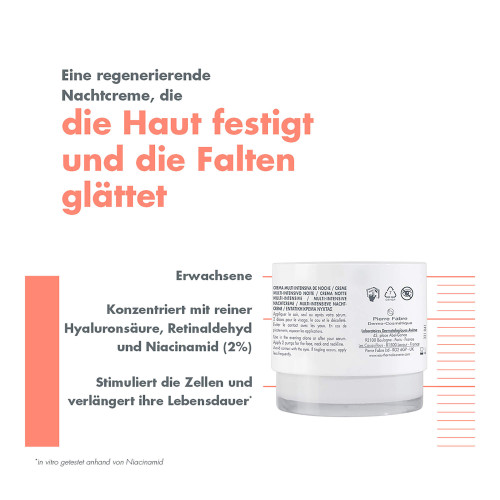 Die Hyaluron Activ B3 Multi-intensive Nachtcreme ist ein umweltfreundliches Hautpflegeprodukt, das zu 97 % aus Inhaltsstoffen natürlichen Ursprungs besteht, vegan ist, und das alles in einem praktischen und sicheren Pumpbehälter.