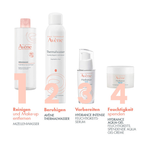Avene Thermal Spring Water (Avene Aqua), Glycerin, Pentylene Glycol, Citric Acid, Coco-Glucoside, Ethyl Lauroyl Arginate HCL, Fragrance (Parfum), Polyglyceryl-4 Caprate, Polyglyceryl-6 Caprylate, Trehalose, Water (Aqua).