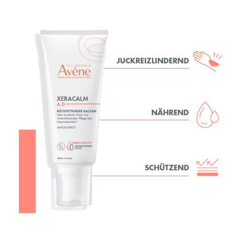 Der XeraCalm A.D Balsam lindert sehr trockene, zu Neurodermitis und Juckreiz neigende Haut, dank der Kombination aus besonderen Aktivstoffen, die aufgrund ihrer Wirksamkeit und Sicherheit ausgewählt wurden. I-modulia®, der erste postbiotische Wirkstoff aus Avène-Thermalwasser, mindert Juckreiz*, stimuliert die Abwehrkräfte der Haut und bekämpft Irritationen. Cer-omega, hautähnliche Lipide, wirken gegen Trockenheit und stellen die Hautbarriere wieder her. Dank Sterile Cosmetics®, einer einzigartigen Technologie, die das Produkt während der gesamten Anwendung steril hält, und dem hermetischen Pumpverschluss ist das Produkt sicher und optimal verträglich für die Haut und das Mikrobiom der Haut. Frei von Konservierungsstoffen und Duftstoffen, nicht komedogen und entwickelt, um das Risiko allergischer Reaktionen zu minimieren, ist der XeraCalm A.D Balsam ideal für die Haut von Babys, Kindern und Erwachsenen.