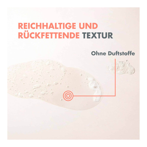 XeraCalm A.D Rückfettendes Reinigungsöl reinigt sanft und beruhigt sehr trockene, zu Neurodermitis und Juckreiz neigende Haut. Als erster Schritt in der Anti-Juckreiz-Routine macht sie die Haut weich und komfortabel und schont das Mikrobiom der Haut. Es ist seifenfrei und hat einen physiologischen pH-Wert, so dass es bei Entzündungen im Gesicht, am Körper und auf der Kopfhaut angewendet werden kann. Die Formulierung beinhaltet den ersten postbiotischen Aktivstoff aus dem Avène Thermalwasser, I-modulia®, der Juckreiz reduziert*, die Abwehrkräfte der Haut stimuliert und Irritationen bekämpft, mit Cer-omega, hautähnlichen Lipiden, die für ihre nährende und wiederherstellende Auswirkungen auf die Hautbarriere bekannt sind, und Avène Thermalwasser, das auf natürliche Weise beruhigend, ausgleichend und stärkend wirkt. Parfümfrei und so formuliert, dass das Risiko allergischer Reaktionen minimiert wird, brennt XeraCalm A.D Rückfettendes Reinigungsöl nicht in den Augen und ist ideal für die Haut von Neugeborenen, Kindern und Erwachsenen.