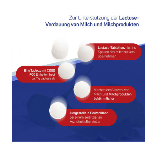 1-2 Tabletten kurz vor oder während des Verzehrs laktosehaltiger Mahlzeiten und Getränke mit etwas Flüssigkeit schlucken.