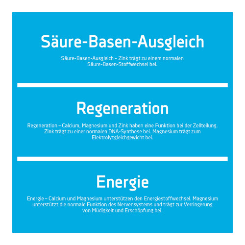 Calciumcarbonat, Magnesiumcarbonat, Füllstoff Cellulose, Maisstärke, Zinkgluconat, Kaliumcitrat, Trennmittel Magnesiumsalze der Speisefettsäuren, Spargelpulver (0,3%), Spirulinaalgenpulver (0,3%).
