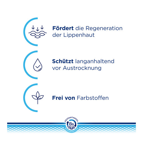- Das in der Lippencreme enthaltene Dexpanthenol fördert den Wiederaufbau der Hautschutzbarriere und trägt ebenfalls zur Verbesserung der Hautfeuchtigkeit bei.