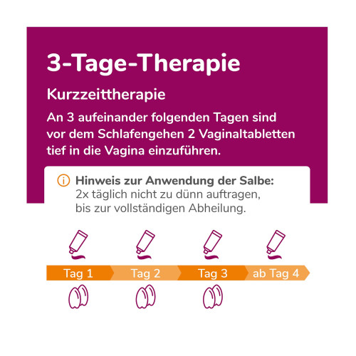 Vaginaltabletten: Die Anwendungsdauer sollte 3 oder 6 Tage betragen.