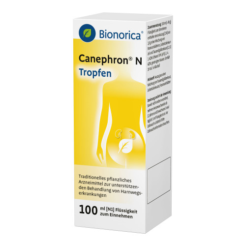 Canephron® N Tropfen. Anwendungsgebiet: Traditionell angewendet zur unterstützenden Behandlung und zur Ergänzung spezifischer Maßnahmen bei leichten Beschwerden im Rahmen von entzündlichen Erkrankungen der ableitenden Harnwege, zur Durchspülung der Harnwege zur Verminderung der Ablagerung von Nierengrieß. Warnhinweis: t Enthält 760 mg Alkohol (Ethanol) pro 5,0 ml entsprechend 152 mg/ml (19 % V/V).