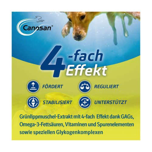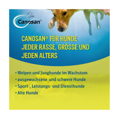 - Ausgewachsene Hunde: Canosan reguliert den Gelenk- und Bindegewebsstoffwechsel und hat so einen positiven Einfluss auf die Gelenke.