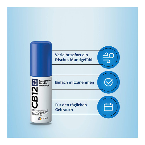 Die häufigste Ursache für unangenehmen Atem ist die Ansammlung von Bakterien im Mund. Sie bilden sogenannte flüchtige Schwefelverbindungen. Das alkoholfreie CB12 Mundspray neutralisiert dank der patentierten Zusammensetzung flüchtige Schwefelverbindungen und der Mint/Menthol-Geschmack verleiht ein erfrischendes Mundgefühl. Durch das handliche Design ist das CB12 Spray der perfekte Begleiter für unterwegs und eine großartige Ergänzung für die orale Gesundheitsroutine.