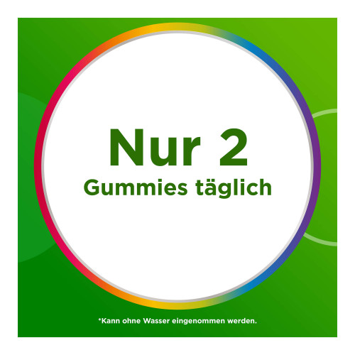Centrum Vitamin Gummies vereinen wichtige Vitamine und Mineralstoffe in Form von Gummibärchen als Alternative zu Tabletten. Die MULTI Vitamin Gummies beinhalten acht Vitamine und zwei essentiellen Mineralstoffe für Dein Wohlbefinden: Vitamin C, D und Zink tragen zu einer normalen Funktion des Immunsystems bei und unterstützen so gezielt die Abwehrkräfte. Vitamin C, E und Zink tragen zum Schutz der Zellen vor oxidativen Stress bei. Die Vitamine B6 und B12 tragen zu einem normalen Energiestoffwechsel bei und helfen, Müdigkeit und Ermüdung zu verringern. Niacin trägt zu einer normalen Funktion des Nervensystems und psychischen Funktion bei. Biotin trägt zur Erhaltung normaler Haut und Haare bei.