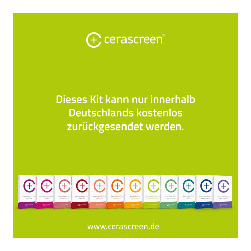 Mit dem cerascreen® Vitamin D Test PLUS, einem Probenahme- und Einsende-Testkit, bestimmen Sie nicht nur die Konzentration des 25-OH-Vitamin-D (Vitamin D3) in Ihrem Blut, sondern insgesamt folgende Werte: