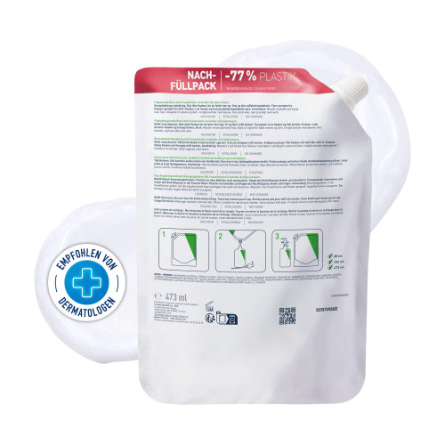 Dank der wiederverschließbaren Nachfüllpackung mit 473 ml kann im Vergleich zu zwei Flaschen in Normalgröße 77 % Plastik eingespart und so die Umwelt geschont werden.