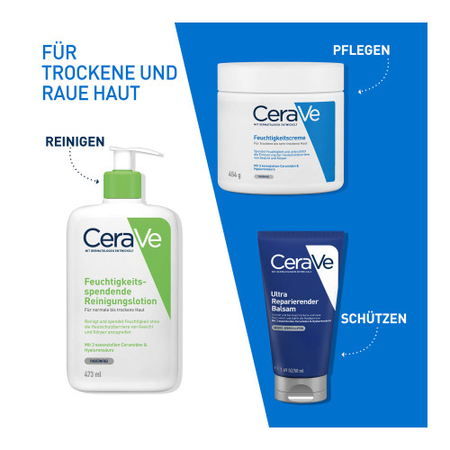 Der CeraVe Ultra Reparierender Balsam mit Hyaluronsäure und den 3 essenziellen Ceramiden schützt und beruhigt raue und trockene Haut sofort. Der Balsam sorgt für eine schnelle Regeneration der Hautschutzbarriere.
