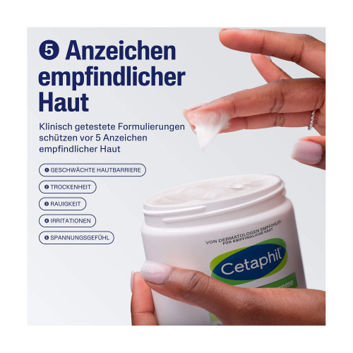 Die Cetaphil Feuchtigkeitscreme ist sowohl für Körper als auch Gesicht geeignet und enthält weder Farbstoffe noch Parfüm. Sie stärkt die natürliche Schutzschicht der Haut mit Sonnenblumenöl, Glycerin und Vitamin E und pflegt sie geschmeidig zart. Die Feuchtigkeitscreme ist auch als begleitende Hautpflege bei Rosazea, Psoriasis, Neurodermitis oder Akne geeignet. Gönnen Sie Ihrer empfindlichen Haut die sanften Reinigungs- und Pflegeprodukte von Cetaphil. Für ein schönes gesundes Hautgefühl und ein strahlendes Aussehen.