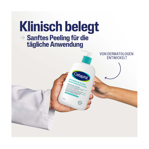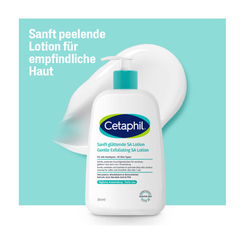 Das Besondere: Die Cetaphil Sanft glättende SA Lotion spendet Feuchtigkeit & peelt so sanft, dass sie auch bei empfindlicher Haut täglich angewendet werden kann - für glattere, weichere Haut ab der 1. Anwendung.