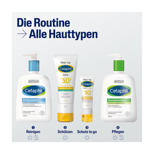 Tipp: Speziell für sonnenempfindliche Gesichtshaut haben wir die Cetaphil Sun Daylong Sensitive Gel-Fluids für das Gesicht entwickelt – erhältlich mit Lichtschutzfaktor 30 und 50+.
