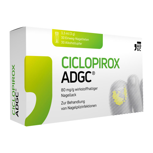 Ciclopirox ADGC 80 mg/g wirkstoffhaltiger Nagellack. Anwendungsgebiete: Behandlung von Nagelpilzinfektionen (Onychomykosen).