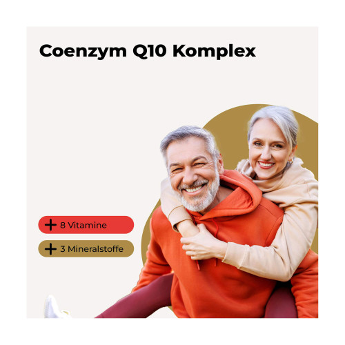 Cellulose (Kapselhülle), Magnesiumoxid, Coenzym Q10, DL-Alpha-Tocopherylacetat (Vitamin E), L-Ascorbinsäure (Vitamin C), Zink-Gluconat, Trennmittel: Tricalciumphosphat; Nicotinamid (Vitamin B3), Cyanocobalamin (Vitamin B12), Trennmittel: Magnesiumsalze der Speisefettsäuren (pflanzlich); Pyridoxinhydrochlorid (Vitamin B6), Thiaminhydrochlorid (Vitamin B1), Riboflavin-5-phosphat (Vitamin B2), Pteroylmonoglutaminsäure (Folsäure), Natriumselenat (Selen).