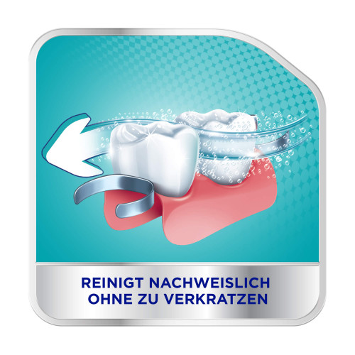 Gut zu wissen: Da Zahnersatz etwa 10mal weicher als natürliche Zähne ist, sollten Sie Ihre Prothese mit Corega Reiniger anstelle einer Zahnpasta reinigen. Herkömmliche Zahnpasta enthält Schleifstoffe, die die weichere Prothesenoberfläche zerkratzen können. In den Kratzern können Bakterien wachsen, die einen unangenehmen Geruch verursachen können.