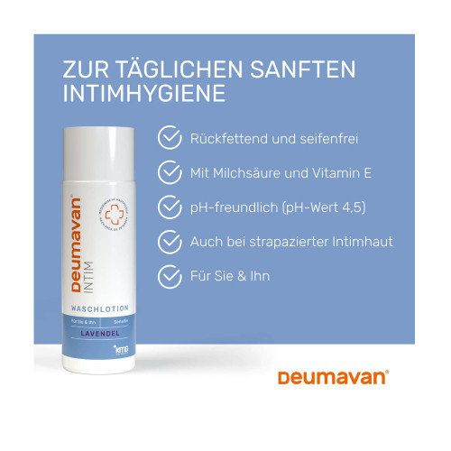Deumavan Waschlotion ist abgestimmt auf die Bedürfnisse der Intimhaut. Sie eignet sich zur täglichen Intimhygiene des äußeren Intimbereichs.