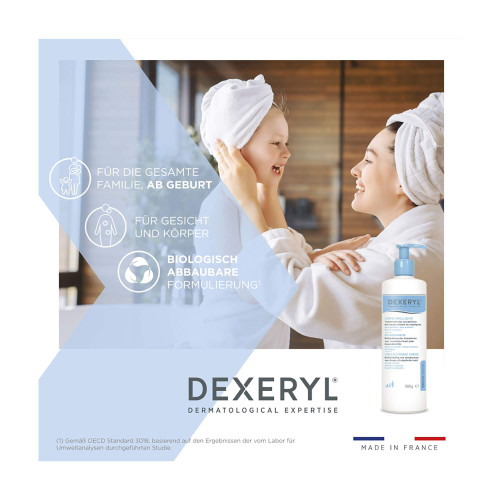 Die DEXERYL® Pflegecreme ist eine intensiv feuchtigkeitsspendende Hautpflegecreme. Sie wurde speziell für die Bedürfnisse von trockener Haut sowie für Personen mit Hauterkrankungen wie Neurodermitis und Ichthyose entwickelt. Die medizinische Hautpflegecreme versorgt die Haut nachhaltig mit Feuchtigkeit und unterstützt die Wiederherstellung der natürlichen Schutzbarriere der Haut. Sie eignet sich für den täglichen Gebrauch bei Erwachsenen und Jugendlichen. Sogar für Kleinkinder und Säuglinge ist die Creme geeignet.