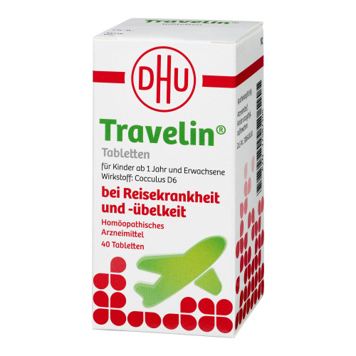 DHU Travelin Tabletten. Wirkstoff: Cocculus Trit. D6. Anwendungsgebiete: Die Anwendungsgebiete entsprechen dem homöopathischen Arzneimittelbild. Dazu gehören: Reisekrankheit und -übelkeit. Warnhinweis: Enthält Lactose (Milchzucker), Weizenstärke kann geringe Mengen Gluten enthalten.