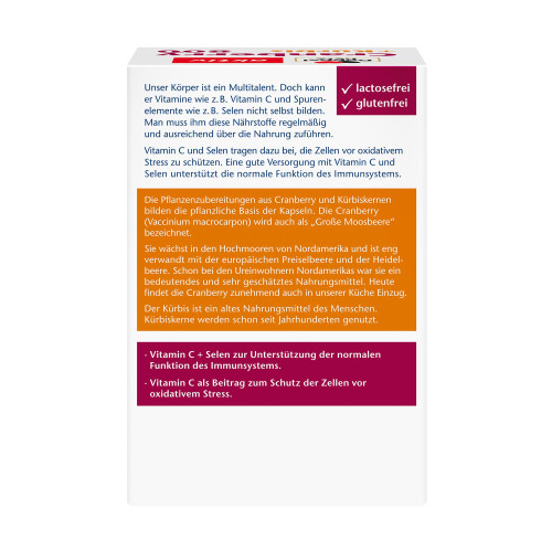 Kapseln mit Cranberryextrakt, Kürbiskernextrakt, Vitamin C und Selen.