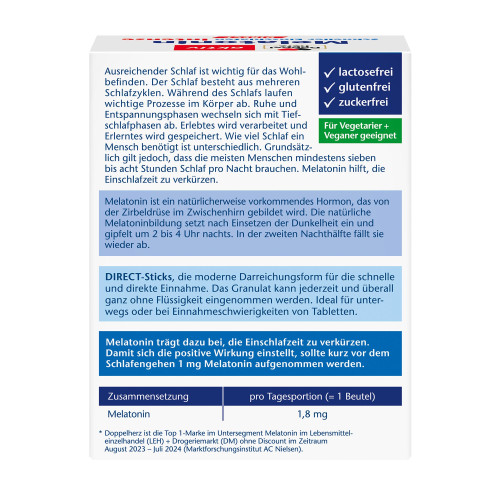 Melatonin sollte nur kurzfristig maximal 3 Wochen angewendet werden. Nach der Einnahme sollten Sie keine Fahrzeuge führen oder Maschinen bedienen, bevor Sie vollständig erholt sind.