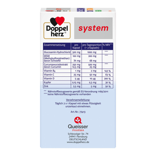 Doppelherz system Glucosamin 1000 + Curcuma Vegan Kapseln 60 St