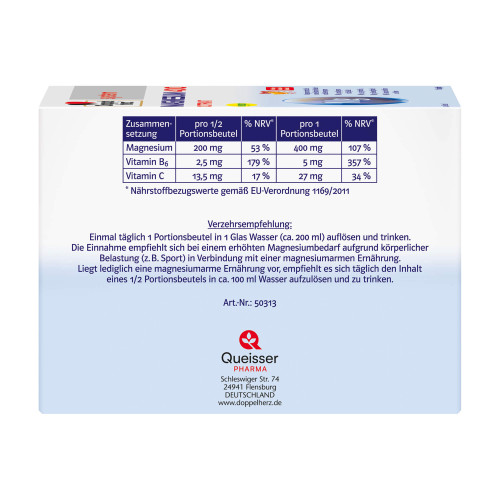 Die Einnahme empfiehlt sich bei einem erhöhten Magnesiumbedarf aufgrund körperlicher Belastung (z. B. Sport) in Verbindung mit einer magnesiumarmen Ernährung. Liegt lediglich eine magnesiumarme Ernährung vor, empfiehlt es sich täglich den Inhalt eines 1/2 Portionsbeutels in ca. 100 ml Wasser aufzulösen und zu trinken.