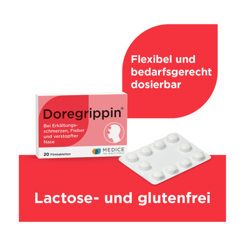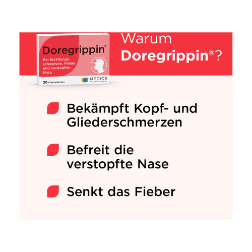 Doregrippin ist ein Arzneimittel zum Einsatz bei Erkältung und grippalen Infekten. Doregrippin enthält die schmerzstillende und fiebersenkende Substanz Paracetamol sowie die nasenschleimhautabschwellende Substanz Phenylephrin.