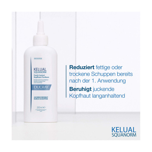 Das DUCRAY KELUAL SQUANORM Kopfhaut Tonikum ist eine Zusatzpflege bei jeder Art von Schuppen. Dieses dermatologische Kopfhaut-Tonikum mit doppelter Wirkung gegen Schuppen und Juckreiz reduziert fettige oder trockene Schuppen bereits nach der 1. Anwendung* und beruhigt juckende Kopfhaut langanhaltend.