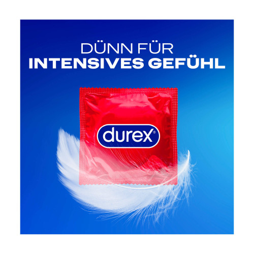 Bitte die Anwendungshinweise auf der Packung vor der Verwendung sorgfältig durchlesen. Damit du das Kondom gleich richtig herum aus der Folie nimmst und überziehen kannst, halte die Folie beim Öffnen mit dem Durex Logo nach unten. Benutze nur Gleitmittel, die für die Verwendung mit Kondomen empfohlen werden – das Gel wird einfach außen auf das bereits angelegte Kondom aufgetragen.