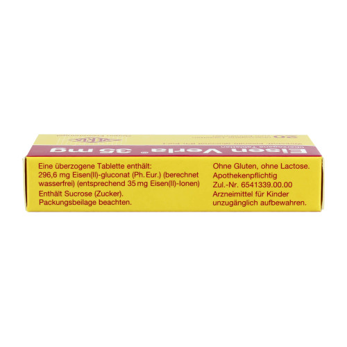 Eisen Verla® 35 mg. Wirkstoff: Eisen(ll)-gluconat (Ph.Eur.). Anwendungsgebiete: Zur Behandlung von Eisenmangelzuständen.