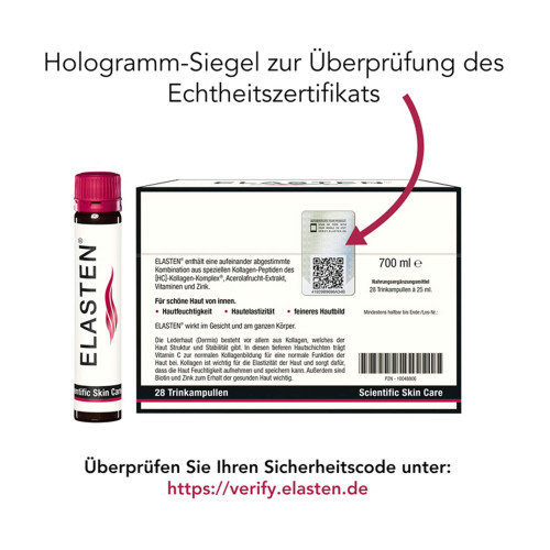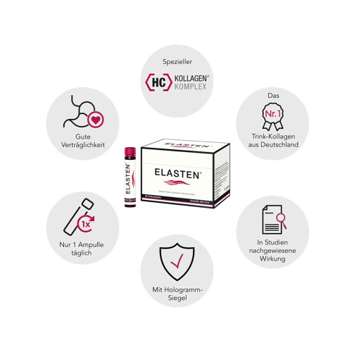 Idealerweise trinken Sie ELASTEN® morgens, da tagsüber der Stoffwechsel aktiver ist und so die Nährstoffe im Körper besser verteilt werden. Eine längere Einnahme von ELASTEN® über mindestens 3 Monate wird empfohlen.