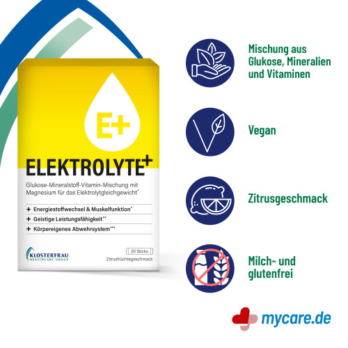 Während der Schwangerschaft und Stillzeit sollte Elektrolyte+ nicht verzehrt werden.
